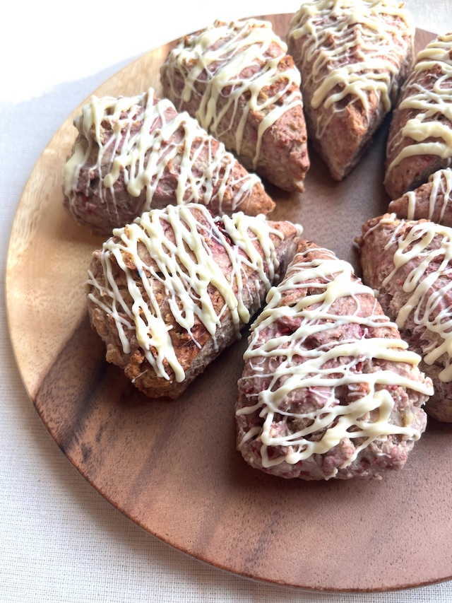 Mom scone セット便(12個)のご案内です。 さまざまなフレーバーをお楽しみいただけます。お友達やご家族でのシェア、ストックスコーンとしてお楽しみください! (5日以内に発送いたします) -MENU- きなこあずき(今週末で終売) ラズベリーホワイトチョコ(今週末で終売) ココアナッツ ダブルココアチョコ ほうじ茶いちじく… などを中心に 8種ほどのセレクトでお届けいたします。 ※同じスコーンが数個入る場合もございます。 [日持ち]冷凍/ 約3週間(ー18℃以下) [すべてのメニューに含まれる原材料] 北海道産小麦・有機無調整豆乳・菜種油・洗双糖・ゲランド塩 / アルミフリーベーキングパウダー (一部に 小麦・大豆 を含む) ※メニューによっては[乳成分][くるみ][アーモンド][オレンジ][ごま][カシューナッツ]が含まれます] 〇時間帯指定は可能です。 【午前中(12時まで) /14〜16時/16時〜18時/18時〜20時/19時〜21時】 〇ヤマト運輸/冷凍便 〇金額のわかる納品書は入りません